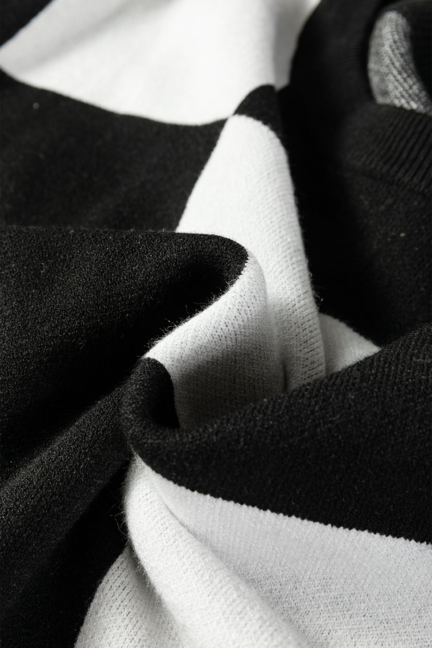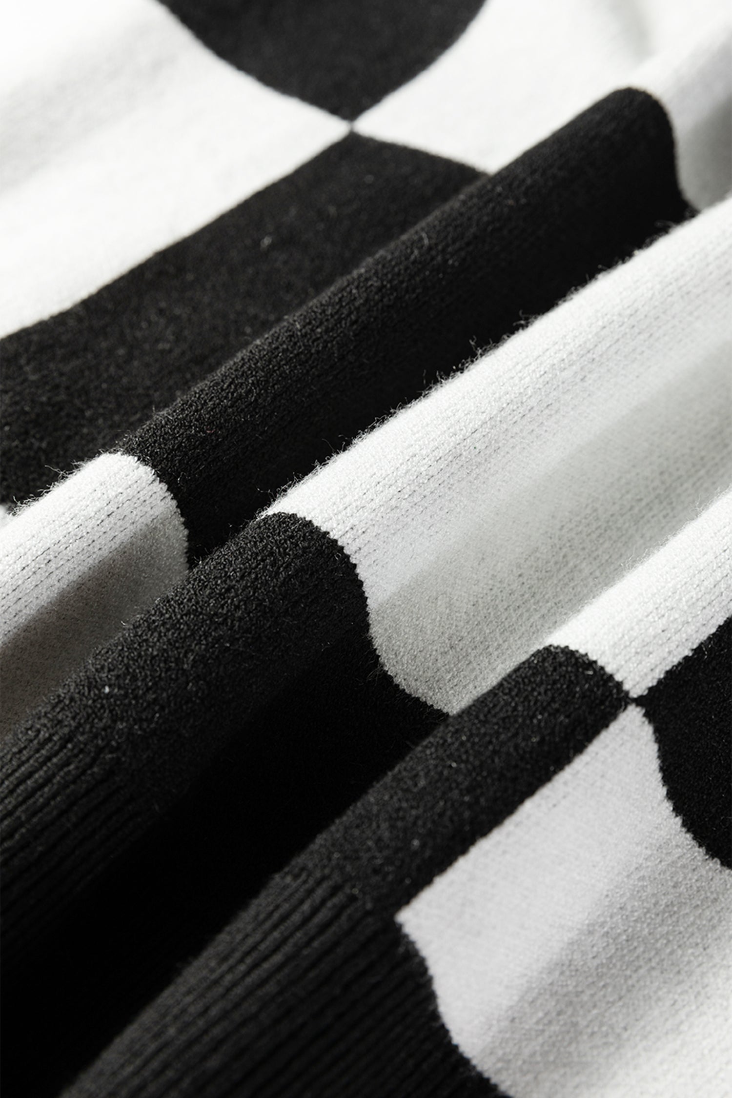 Black Checkered Pattern Loose Drop Shoulder Half Sleeve Sweater