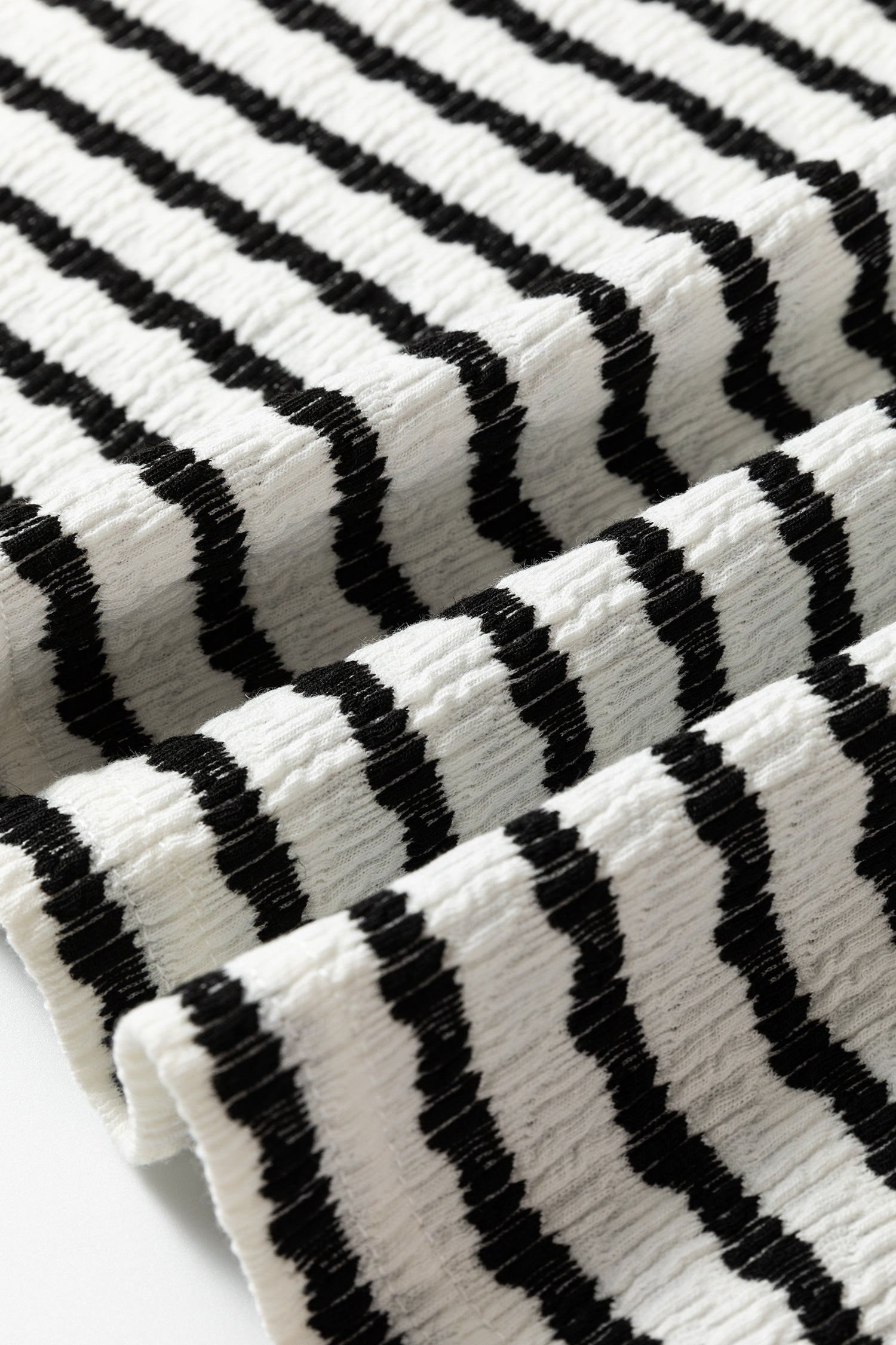 Black Stripe Textured Hooded V Neck Casual Long Sleeve Top