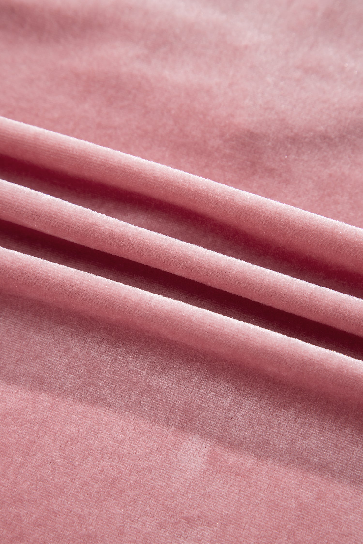 Fushia Solid Color Velvet Ribbon Bow Knot Long Sleeve Blouse
