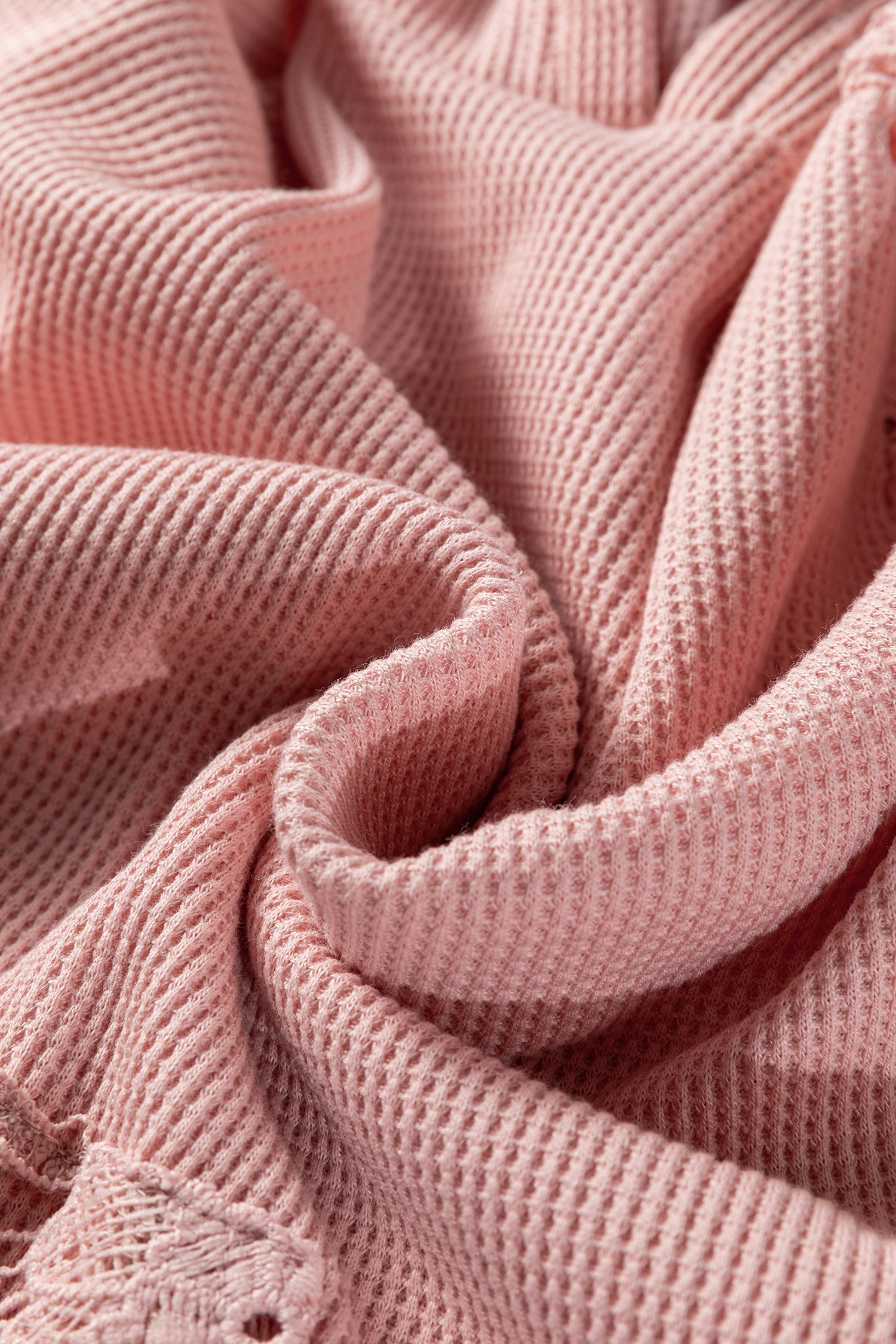 Gossamer Pink Lace Patchwork Raglan Sleeve Kangaroo Pocket Waffle Hoodie