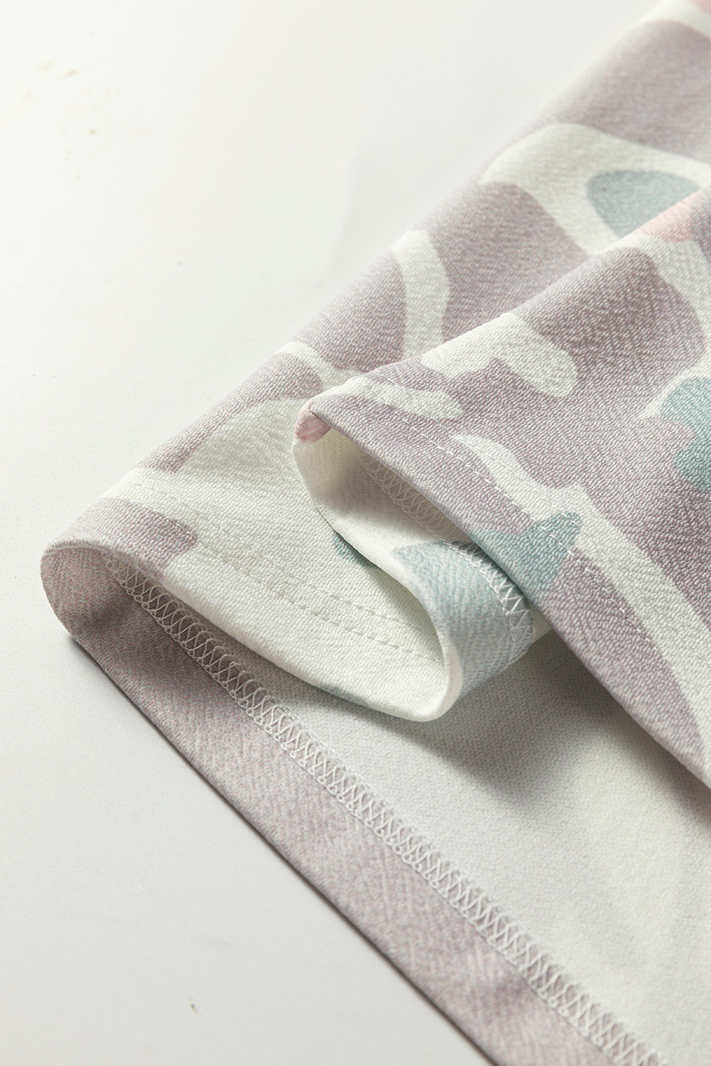 Green Plus Size Camouflage Print Drop Shoulder Loose Pullover Top