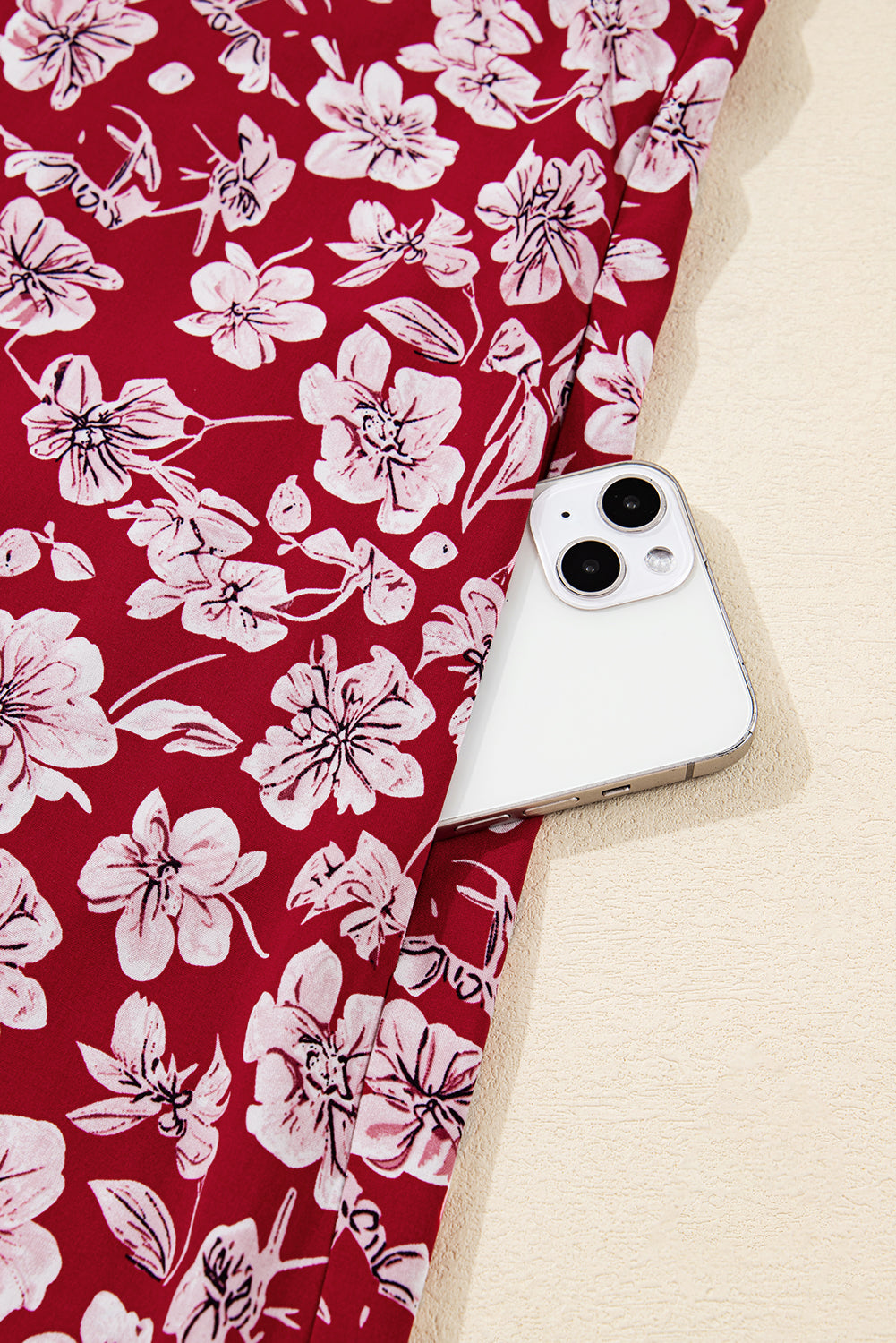 Purple Plus Floral Balloon Sleeve V Neck Relaxed Dress