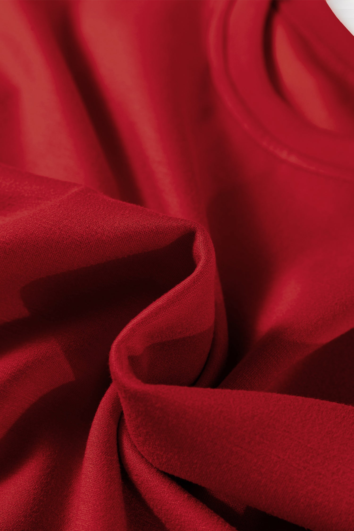Racing Red Solid Color Drop Shoulder Pullover Drawstring Mini Skirt 2pcs Outfit