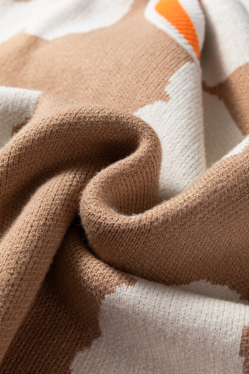 Smoke Gray Big Flower Pattern Contrast Striped Baggy Sweater